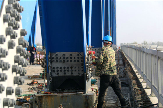 “為確保該連續(xù)梁橋各節(jié)點(diǎn)目標(biāo)順利實(shí)現(xiàn),中鐵一局鄭阜鐵路項(xiàng)目部不斷優(yōu)化施工方案,開展多項(xiàng)科技攻關(guān),多次組織相關(guān)專家進(jìn)行技術(shù)方案研討論證,有效針對(duì)超高大節(jié)段0號(hào)塊施工、鋼桁節(jié)點(diǎn)板精準(zhǔn)預(yù)埋、超大跨度連續(xù)梁線性控制、鋼桁梁制作及拼裝等諸多困難,制定切實(shí)、可靠、安全高效的施工方案,并嚴(yán)格執(zhí)行。后經(jīng)相關(guān)監(jiān)控單位測量,項(xiàng)目拼裝完成后的曲弦鋼桁梁桁高、節(jié)點(diǎn)長度偏差均在1.5毫米,主桁中心距對(duì)角線偏差2毫米,全橋鋼桁拼裝精度高,各項(xiàng)檢測指標(biāo)均符合設(shè)計(jì)要求,實(shí)現(xiàn)由“紙上藍(lán)圖”變“地上通途”。”項(xiàng)目總工程師張洪偉介紹道。