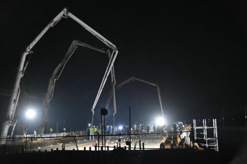 此次道岔連續(xù)梁澆筑自10日上午9點(diǎn)28分開始,至11日凌晨2點(diǎn)28分結(jié)束,歷時17小時,該公司項目部全體參戰(zhàn)人員連續(xù)作戰(zhàn)、盡職盡責(zé),完成混凝土澆筑1300方。