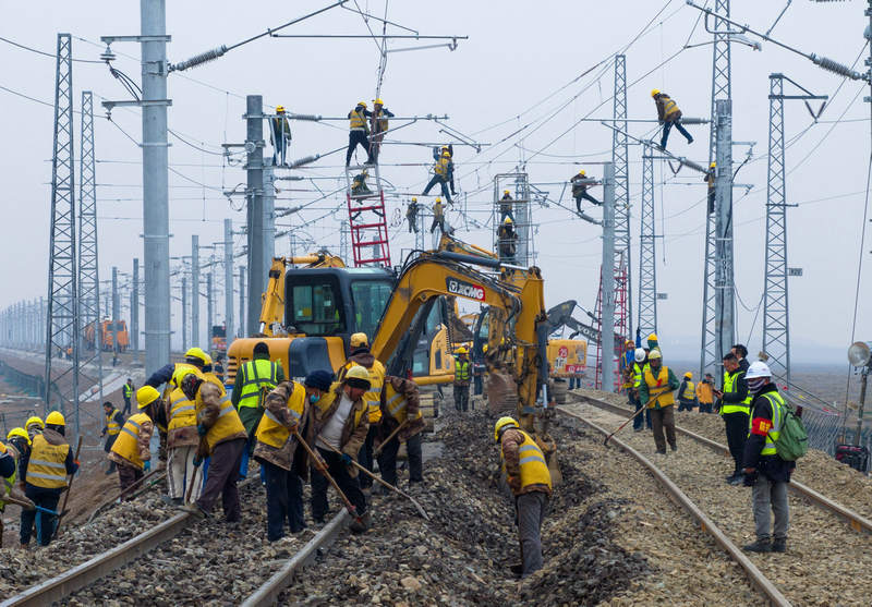 在臨近營(yíng)業(yè)線(xiàn)僅3米左右建設(shè)70公里的鐵路二線(xiàn),原線(xiàn)路還在不斷通過(guò)高頻次客貨列車(chē),既要克服大風(fēng)天氣多、施工點(diǎn)分散、交叉作業(yè)多等不利因素影響,還要全面保障行車(chē)安全和施工安全,就像在刀刃上跳舞,風(fēng)險(xiǎn)挑戰(zhàn)無(wú)時(shí)不有、無(wú)處不在。中鐵二十一局2500余名建設(shè)者歷時(shí)9個(gè)月日夜奮戰(zhàn),600多次“封閉點(diǎn)”天窗作業(yè),在“狹路相逢”中爭(zhēng)分奪秒、日夜奮戰(zhàn),安全高效完成了施工任務(wù),使東起連云港、西至阿拉山口全長(zhǎng)4182公里的“新亞歐大陸橋”國(guó)內(nèi)段鐵路大通道首次形成全線(xiàn)雙線(xiàn)運(yùn)營(yíng),為“一帶一路”建設(shè)插上騰飛之翼。