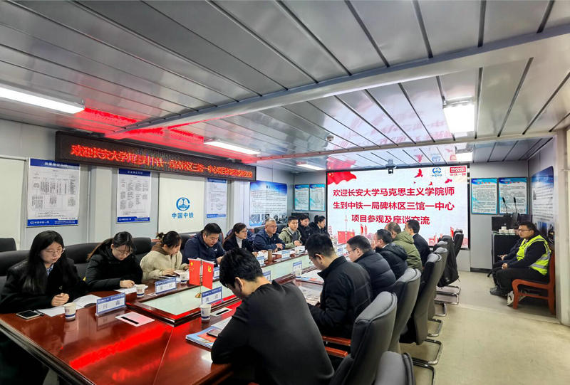 為進(jìn)一步深化企校聯(lián)合,12月28日,長安大學(xué)馬克思主義學(xué)院黨委書記李小芹一行走進(jìn)中鐵一局西安三館一中心項(xiàng)目參觀座談交流。