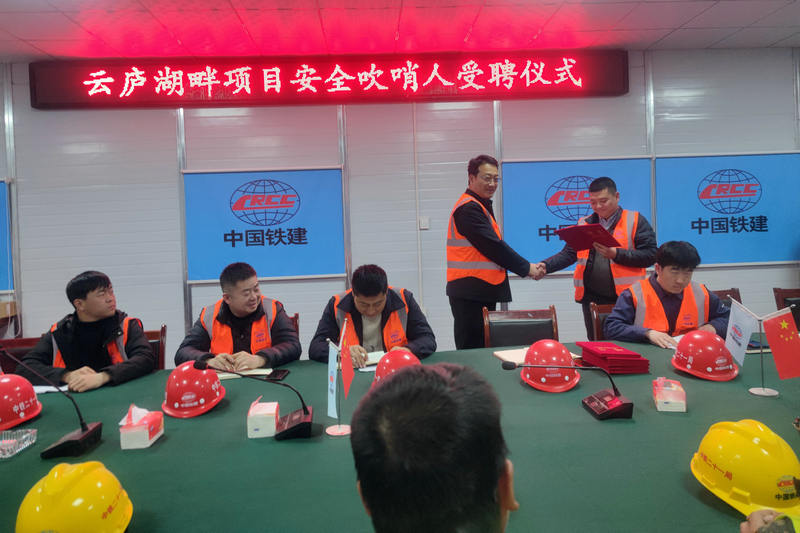 3月12日,中鐵二十一局云廬湖畔建設(shè)項目為6名“安全吹哨人”舉行受聘儀式,項目部管理人員、勞務(wù)工代表共計20人參加。