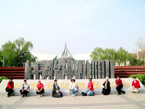午餐過后,大家不約而同的來到了一街之隔的“北京國際雕塑公園”,盡情參觀了各種風(fēng)格流派的、中外著名雕塑家的作品,“環(huán)境”(中國)、“晨”(俄羅斯)、“生命”(巴斯基坦)、“地平椅”(英國)、“進(jìn)化”(瑞士)、“和平老人”(中國)、宇宙吸引者(德國)、“和平之門”(墨西哥)……不算大的公園,卻有數(shù)不清的雕塑作品,令人目不暇接。陳朝凱似乎對這個地方很熟悉,陪大家聊天的中間,還時不時的介紹參觀的作品……