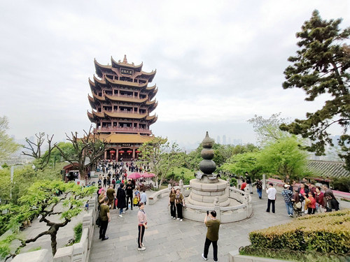 4月11日早餐后,武漢戰(zhàn)友史錫騰便首先陪同兵網(wǎng)文創(chuàng)中心的戰(zhàn)友們參觀(guān)欣賞江南三大名樓之首的黃鶴樓!