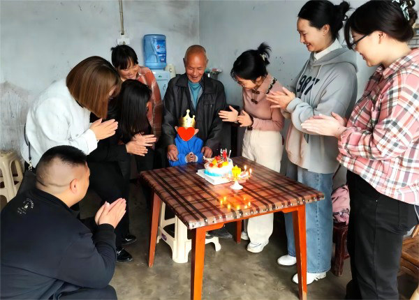 “祝你生日快樂,祝你生日快樂,杰杰(化名)寶貝,今天是你9歲的生日,今天這么多老師和哥哥姐姐來給你過生日,你開心嗎?”戴著生日帽的杰杰看著生日蠟燭被點(diǎn)亮,他開心地直鼓掌,拉著哥哥姐姐的手一起切蛋糕。吃完蛋糕后,志愿者們拿出了提前準(zhǔn)備好的手工貼紙,握著杰杰的手教他貼紙,通過連續(xù)性的練習(xí),杰杰的手部控制能力有了明顯的提高。一旁的杰杰爸爸也向老師和志愿者們介紹著杰杰最近的變化,對(duì)送教老師和志愿者們的盡心盡責(zé)、辛苦付出表示感謝。