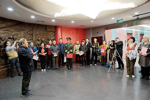 之一:4月8日組團(tuán)后,戰(zhàn)友、軍嫂、鐵二代等分別從全國(guó)各地齊聚北京;4月9日,按原計(jì)劃參觀“鐵道兵紀(jì)念館”暨“中國(guó)鐵建展覽館”。參觀之前,馮復(fù)加、李武斌(由女兒陪同)、劉勝等當(dāng)代著名詩(shī)人先后來(lái)到了戰(zhàn)友們中間,并把劉勝主筆、集體創(chuàng)作的《鐵道兵組歌》贈(zèng)送給了鐵道兵紀(jì)念館,無(wú)疑為這次“鐵色之旅”活動(dòng)增色不少。——這是首先沒(méi)有想到的!