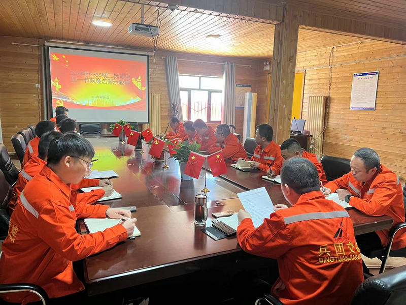 石河子訊(通訊員 李宇通)為切實(shí)增強(qiáng)黨風(fēng)廉政建設(shè),加強(qiáng)黨員干部黨章黨紀(jì)黨規(guī)意識(shí),全面筑牢項(xiàng)目職工拒腐防變思想防線。近日,兵團(tuán)交建公司第八師G335二標(biāo)148團(tuán)-149團(tuán)-150團(tuán)公路第二標(biāo)段項(xiàng)目組織開展“五一”節(jié)前廉政教育會(huì)。項(xiàng)目部全體職工參加會(huì)議。