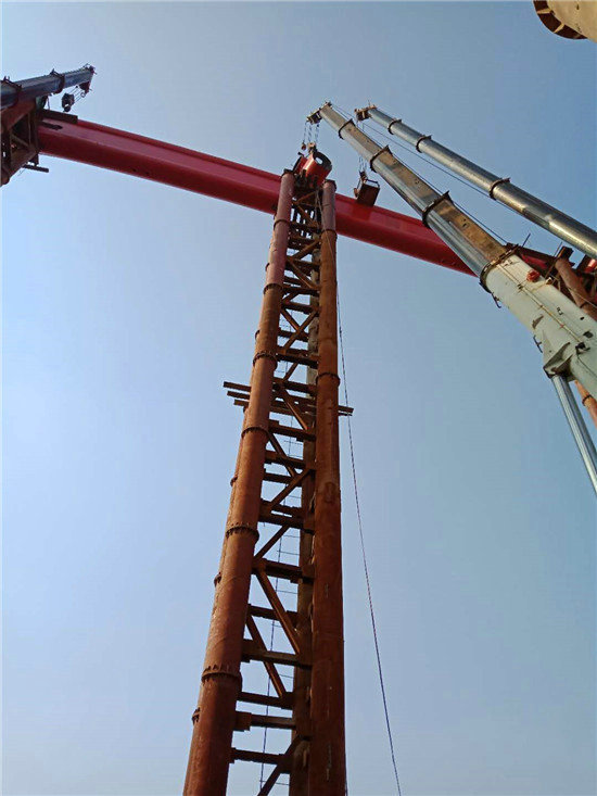 該橋跨越淮河的第二大支流渦河,是本標(biāo)段的重難點控制性工程,工期緊、安全風(fēng)險高、施工難度大。為確保施工安全、安裝精度及工程進度,項目部根據(jù)本橋鋼管拱專項施工方案,結(jié)合現(xiàn)場實際施工條件和要求,優(yōu)化施工組織。討論制定了可行性工藝方法,確定了臨時支架采用分節(jié)制作、倒運、安裝的搭設(shè)方法,每個支架分兩節(jié)安裝,法蘭盤連接,節(jié)約了支架安裝時間。
