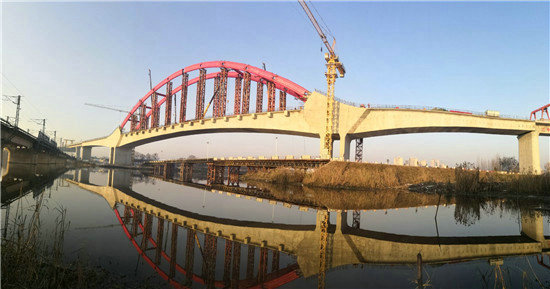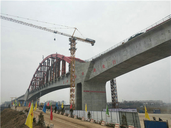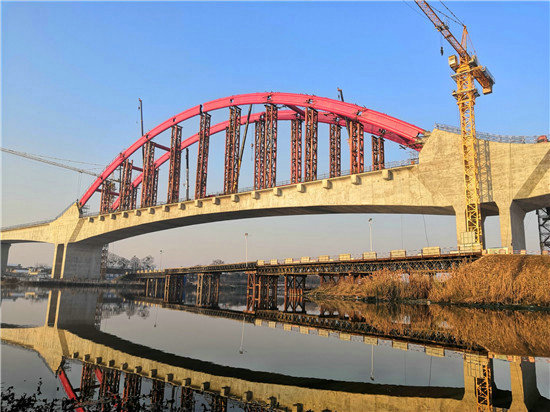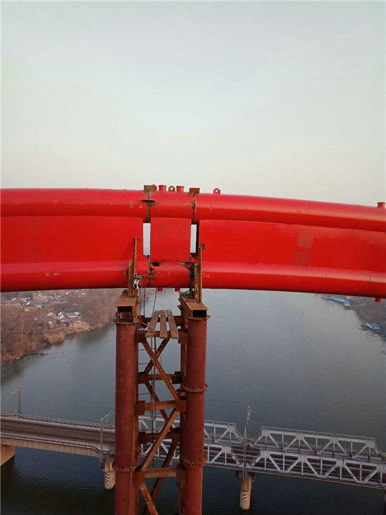 鋼管拱的順利合龍,在商合杭鐵路全線2座同類型同跨度的橋梁中,以優(yōu)于其他標(biāo)段的安裝效果、小于其他標(biāo)段的工期,以優(yōu)異的成績?yōu)榧瘓F公司、五公司交出一份滿意的答卷、為安徽亳州人民渦河上架起一座高鐵“彩虹”。