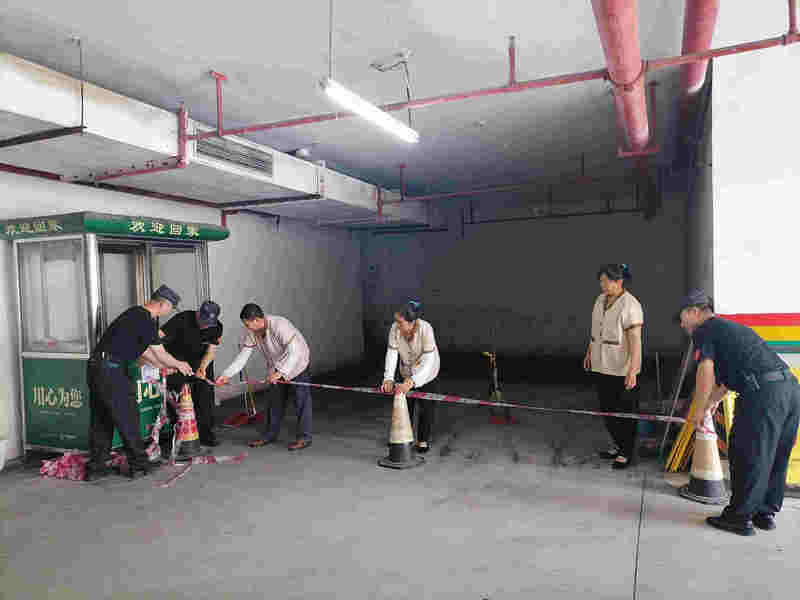 險(xiǎn)情就是命令,接到通知后客服管家立即編輯暴雨溫馨提示在業(yè)主群進(jìn)行發(fā)布,并對(duì)商鋪門市進(jìn)行電話或者微信告知;環(huán)維部員工提前準(zhǔn)備好雨具,樓棟保潔工作人員對(duì)各自高層天臺(tái)地漏進(jìn)行檢查清理,并提前將單元大廳的防滑地墊和安全提示牌擺放到位;外圍保潔對(duì)道路水篦子鋼絲網(wǎng)地漏、綠植排水溝進(jìn)行檢查清理;秩序部由班長(zhǎng)到消控室領(lǐng)取雨衣、雨靴分發(fā)到各崗位。維養(yǎng)部為應(yīng)對(duì)突發(fā)停電、排污井反水等情況檢查各街區(qū)的柴發(fā)室設(shè)備,車庫(kù)強(qiáng)排設(shè)備以及準(zhǔn)備潛水泵等工具。各部門準(zhǔn)備工作完成后由部門負(fù)責(zé)人向片區(qū)經(jīng)理報(bào)告。