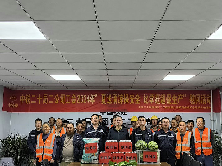 7月26日,新疆金銅礦采選項目開展“夏送清涼 保安全 比學趕超促生產(chǎn)”活動,有效保障高溫天安全施工生產(chǎn),進一步提高生產(chǎn)效率,項目為施工人員采購了西瓜、礦泉水、綠豆等送清涼物資,并在第一時間將物資送到一線員工手里。