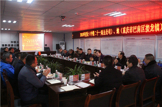 1月4日,中鐵二十一局五公司渝黔項(xiàng)目部和重慶市巴南區(qū)接龍鎮(zhèn)召開企地共建年終總結(jié)會。巴南區(qū)人大副主任朱作芳、交委副書記陳志寬,巴南接龍鎮(zhèn)黨委書記馮天華、人大主席崔國彬;渝黔擴(kuò)能建設(shè)指揮部黨工委書記董亞輝、,第二總包部副指揮長趙明;中鐵二十一局五公司黨委副書記、紀(jì)委書記任宏科等領(lǐng)導(dǎo)出席會議并講話。重慶巴南區(qū)高速公路指揮部、巴南區(qū)征地辦、巴南日報(bào)記者、轄區(qū)駐地村黨委領(lǐng)導(dǎo)及項(xiàng)目部全體黨員干部共計(jì)30余人參加會議。