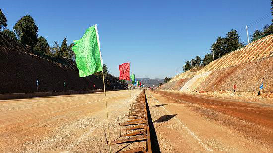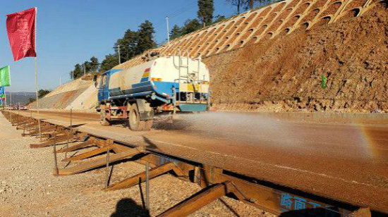 云南滇中新區(qū)機(jī)場(chǎng)北高速工程全長17.615千米,設(shè)計(jì)為雙向八車道高速公路,路面寬18.75米,設(shè)計(jì)速度100千米/小時(shí),計(jì)劃于2019年12月建成通車。該項(xiàng)目是中國鐵建大橋局西北公司在云南地區(qū)承建的首個(gè)路面項(xiàng)目,為了確保施工品質(zhì),項(xiàng)目部針對(duì)工程段零散、工期緊任務(wù)重、環(huán)保要求高等挑戰(zhàn),設(shè)定了“品質(zhì)高效、安全快速、控制成本”的建設(shè)目標(biāo)。