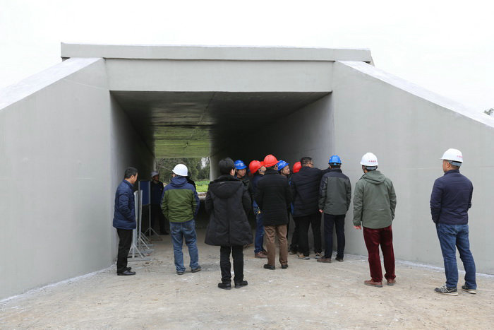 督查組人員查看涵洞八字墻 涵洞施工是DDTJ1標(biāo)項目部的一大亮點,全線共有涵洞107座,目前已完工50座。這些涵洞的特點全部為現(xiàn)澆,交通排水功能皆具,空間尺寸大,長度達(dá)數(shù)十米,涵洞墻身及蓋板光滑,清水混凝土顏色十分耐看,幾何線型尺寸美觀。督查組人員聚集在洞口觀看,有的還不時用手觸摸墻身,甚至走進(jìn)涵洞內(nèi),督查組在贊嘆工程質(zhì)量的同時,還不忘“挑刺”。如用剩的油氈沒有及時收走,臺背回填不及時等。中國鐵建投資集團德都高速公路責(zé)任有限公司的領(lǐng)導(dǎo),希望德都一標(biāo)項目部繼續(xù)扮演好全線領(lǐng)頭羊的角色,在工程質(zhì)量,安全進(jìn)度方面成為全線的標(biāo)桿。針對督查組提出的問題,經(jīng)理楊斌立即安排工區(qū)進(jìn)行整改。