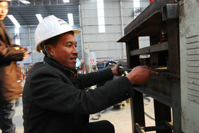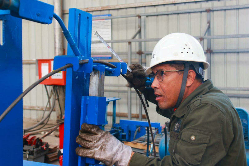 圖為馬小利調(diào)試鋼筋自動(dòng)焊接設(shè)備