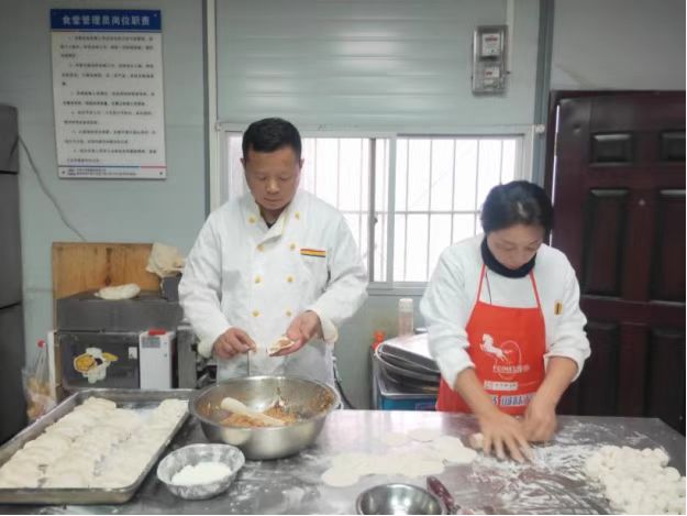【項目部廚師田慶雷、江偉麗為員工做青島特吃早餐鍋貼】