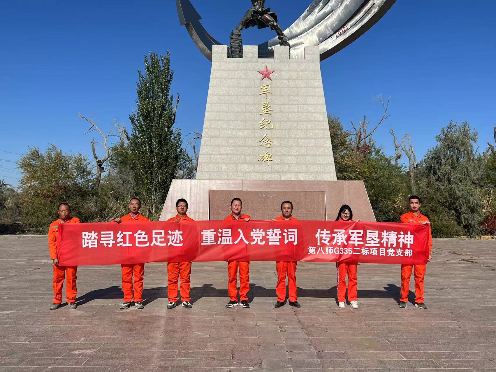 石河子訊(通訊員 穆鴻宇)近日,北新路橋集團兵團交建公司第八師G335二標(biāo)項目黨支部組織項目全體黨員前往駝鈴夢坡紅色教育基地,開展“黨旗映天山”主題黨日活動。大家身著整齊的工裝,胸前的黨徽在陽光下熠熠生輝,一起感受著“熱愛祖國、無私奉獻(xiàn)、艱苦創(chuàng)業(yè)、開拓進取”的兵團精神。