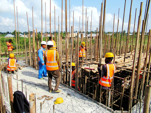 在保證施工的同時,他們逐步拓展市場調(diào)查渠道。三番五次討價之后,也會采用一定策略:明知道價格較高,就一定要限期免費送貨,進(jìn)而延遲付款,否則中斷生意往來。掌握了這些,當(dāng)?shù)厣虘粢仓荒艽饝?yīng)。同時,采購渠道拓寬,延長到200公里外的拉各斯市場進(jìn)行采購,因為只有拉各斯才有中方供應(yīng)商。至今,項目部所用的實驗儀器、食堂炊具和各種型號的模板均已通過國內(nèi)發(fā)貨用在了國外的項目上。廣開招工渠道,滿足施工需要