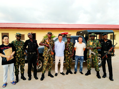 (雇傭的武裝警察陪同巡視現(xiàn)場)