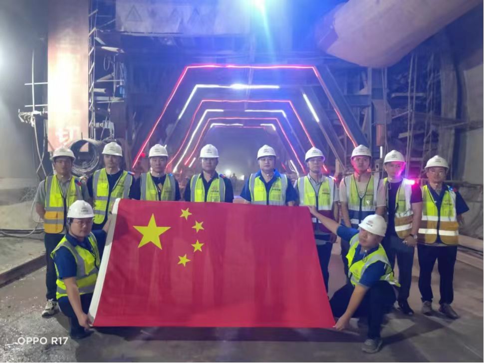 黨旗在隧道掌子作業(yè)面飄揚