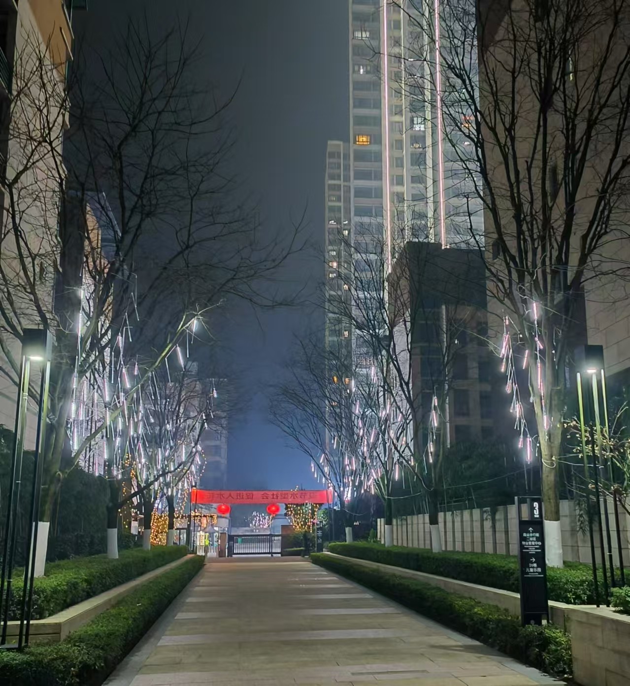 2025年1月10日,物業(yè)服務(wù)中心全體人員出動,各部分工合作為小區(qū)換新裝。掛著紅彤彤的大燈籠的小區(qū)大門,懸掛在小區(qū)大門入口上方橫幅:“北新宜邦物業(yè)恭祝全體業(yè)主佳節(jié)如意.闔家幸福”異常醒目,為2025年的春節(jié)拉開了序幕,大樹上掛上了滿天星、流星雨等彩燈飾品讓夜晚的御龍灣充滿洋洋喜慶,各色花卉盆栽足足450盆有余裝點著“春”的韻味,各單元大廳門口磚被金箔布包裝成金磚,為家園增添了一份新年的喜慶,貼窗花、貼年畫,張張對聯(lián)印著福字,給這個年增添了滿滿節(jié)日氛圍。