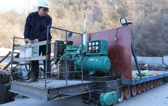 小南塬隧道整體設(shè)計(jì)為橢圓形,隧道底部空間只有7米,中間寬度有10米。作為中國鐵建首批命名的勞模創(chuàng)新工作室,“馬小利勞模創(chuàng)新工作室”根據(jù)隧道空間特點(diǎn)設(shè)計(jì)制作“隧道施工車輛自動(dòng)調(diào)頭轉(zhuǎn)盤”,讓其高出地面排水溝、電纜槽,施工車輛駛?cè)朕D(zhuǎn)盤,調(diào)頭轉(zhuǎn)向時(shí)正好利用隧道空間最寬處。該轉(zhuǎn)盤功率為2.2千瓦,重量12噸,利用從棧橋、二襯臺(tái)車上拆下的槽鋼、鋼板制作,只需按鈕操作,最多一分鐘完成轉(zhuǎn)向,實(shí)現(xiàn)了自動(dòng)化。