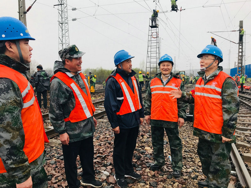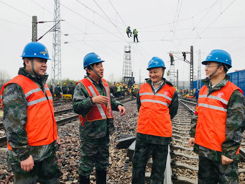 中鐵二十局集團(tuán)電氣化公司常務(wù)副總經(jīng)理王耀輝、工程項(xiàng)目管理部部長(zhǎng)楊有福深入現(xiàn)場(chǎng),指導(dǎo)監(jiān)督施工。