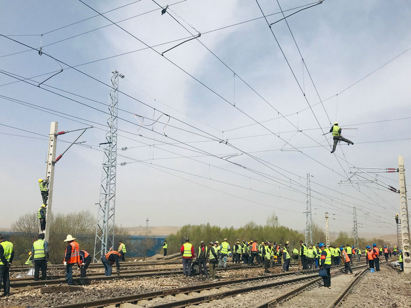 中國鐵路工程建設(shè)網(wǎng)太原訊(記者張明)4月21日12:00時,隨著太原鐵路局集團朔州車務(wù)段安塘站結(jié)束“天窗點”令的正點下達,中鐵二十局集團電氣化公司同煤岢嵐項目寧岢鐵路插入14號道岔并連通相關(guān)線路,小機搗固,電務(wù)連通軌道電路、聯(lián)鎖試驗,設(shè)備調(diào)試,拆除室內(nèi)14號道岔過渡條件,電氣化接觸網(wǎng)調(diào)整等Ⅲ級封鎖施工“十戰(zhàn)十勝”,實現(xiàn)了安全“零事故”、質(zhì)量“零缺陷”、工序“零拖延”的目標。