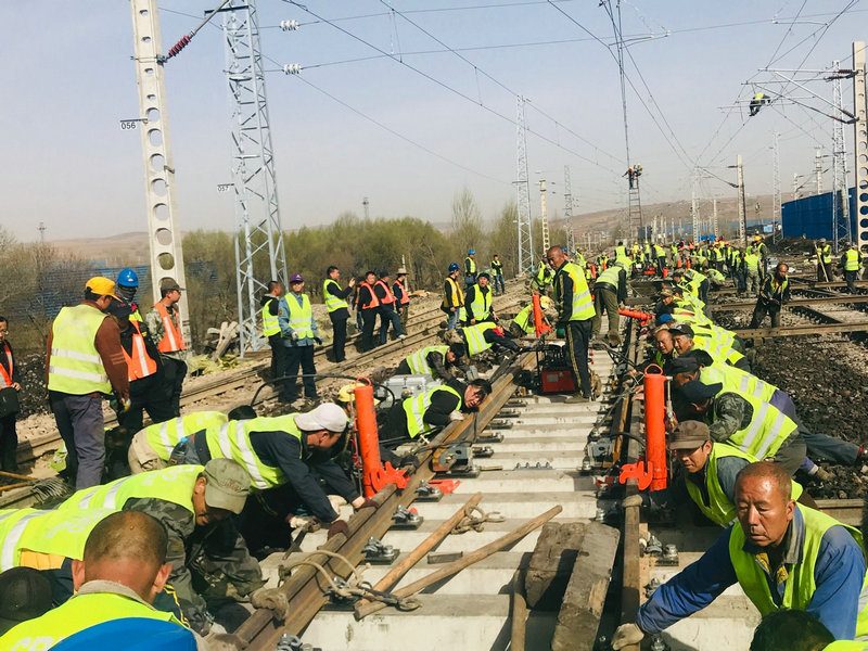 據(jù)悉,從封鎖施工令下達開始,參加封鎖施工的項目各管理人員和各施工作業(yè)隊人員,以及機具都快速就位,迅速投入到封鎖施工當(dāng)中。封鎖施工期間,210余人兵分多路,電務(wù)、供電、工務(wù),以及防護、鋸軌、拆除、撥道、搗鼓同時交叉作業(yè),封鎖嚴格按照預(yù)定方案進行。