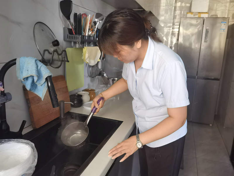 突發(fā)狀況前,她們更是業(yè)主的“及時雨”。此前,一位業(yè)主家中水龍頭突發(fā)漏水,管家接到求助電話后,10分鐘內(nèi)便攜帶扳手、密封圈等工具上門。一邊麻利拆解故障部件、更換零件,一邊安撫業(yè)主情緒;維修結束后,還順手擦拭臺面水漬,臨走時貼心叮囑“有問題隨時找我”,讓業(yè)主倍感溫暖。