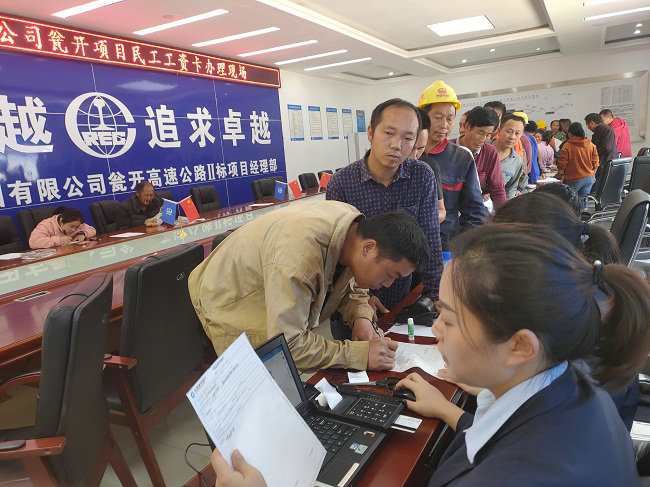 如何做好農(nóng)民工權(quán)益維護(hù)工作,保障農(nóng)民工工資按時發(fā)放,一直是項目部工會的“頭等大事”。今年以來,項目部就“實錘重?fù)?rdquo;,對凡進(jìn)場施工隊伍采取簽訂“安保書和工保書”,繳納“安保金” 、“欠薪應(yīng)急”、“專用賬戶”、“一戶一冊”,與地方行業(yè)主管部門共同監(jiān)管的勞動用工動態(tài)管理制度,聯(lián)合中國建設(shè)銀行甕安支行工作人員,設(shè)立“工地銀行”現(xiàn)場為200余名農(nóng)民工辦理”惠福農(nóng) “工資卡,并指導(dǎo)幫助他們激活銀行卡,確保農(nóng)民工工資按時足額發(fā)放,切實維護(hù)農(nóng)民工切身利益。