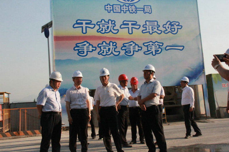 在誓師大會(huì)現(xiàn)場,還舉行了“工人先鋒號(hào)”、“黨員先鋒崗”、“青年突擊隊(duì)”授旗儀式,中鐵一局到會(huì)的全體員工面對鮮紅的戰(zhàn)旗許下了確保目標(biāo)實(shí)現(xiàn)的錚錚誓言。