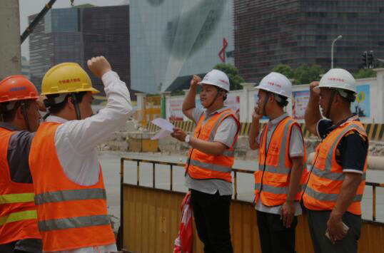 圖五、上海地鐵206標(biāo)項目工地上,全體工人履職宣誓,感黨恩,跟黨走!