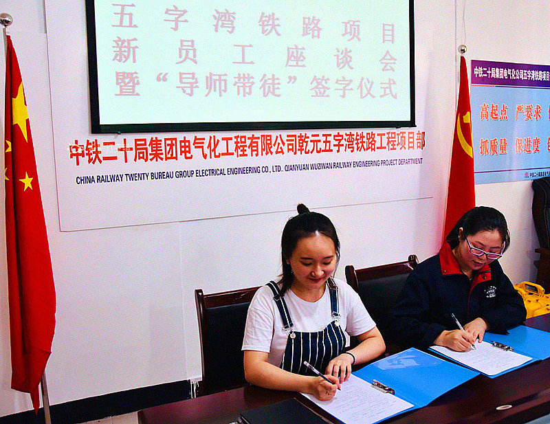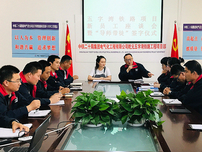 本站府谷訊(記者張明 通訊員涂朝靜 李金翼)為加強(qiáng)對新員工技術(shù)和技能的培養(yǎng),有效促進(jìn)新員工技能提升和崗位成才。7月30日,中鐵二十局集團(tuán)電氣化公司乾元五字灣鐵路項目舉行了2019年新入職員工座談會暨“導(dǎo)師帶徒”協(xié)議簽字儀式。
