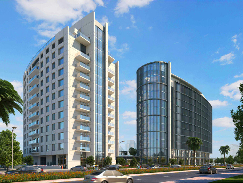 該項(xiàng)目位于迪拜Jadaf地區(qū),總占地面積為12077.40平方米,建筑檐高62.9米,承包方式為工程總承包,合同金額為2.46億迪拉姆,折合約為4.73億元人民幣,工期為20個(gè)月。
