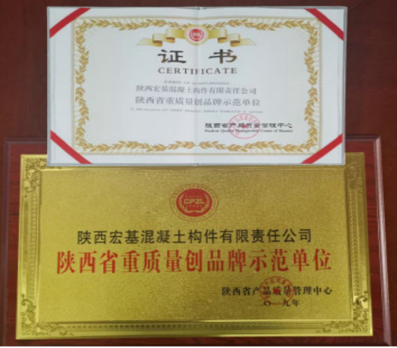 陜西省重質(zhì)量創(chuàng)品牌示范單位榮譽