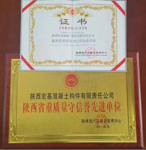 陜西省重質(zhì)量守信譽先進單位榮譽