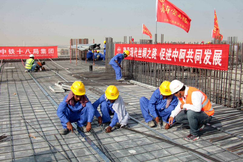 為了早日建成象征中沙友誼的工程,擦亮中國鐵建品牌,中鐵十八局集團國際公司副總經理兼沙特公司黨工委書記、總經理陳德斌、項目經理付東風和項目部員工放棄與家人團聚的機會,堅守崗位,積極組織鋼結構、空心樓板安裝,施工進度不斷加快。