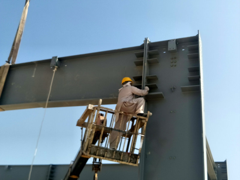 1、中鐵十八局集團沙特公司承建的沙特東部最大的綜合性商業(yè)園區(qū)——達曼商業(yè)園區(qū)達蘭加工車間鋼結構施工現場(伍振 徐名峰 攝)