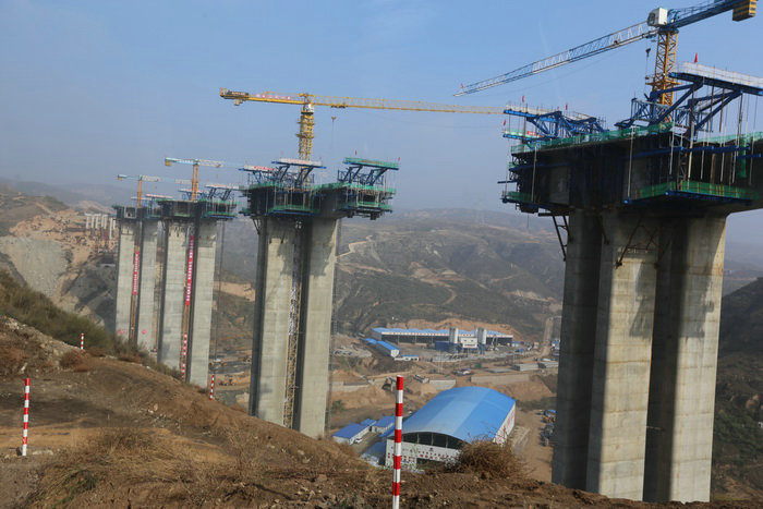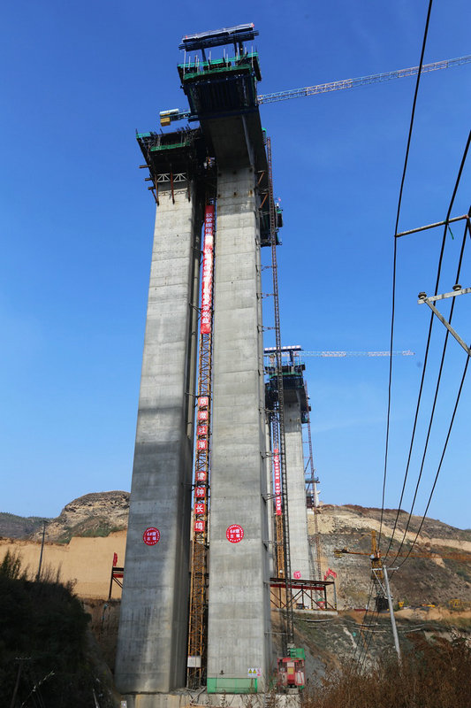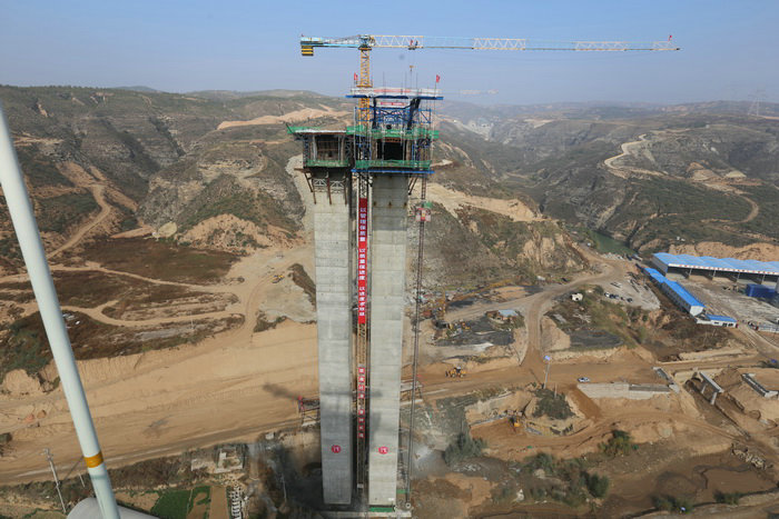 國道336神木店張公路四支河特大橋主墩橋面至地面101.5米