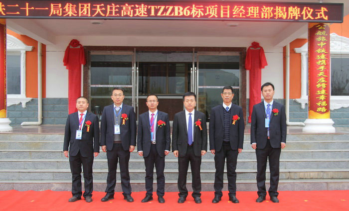 揭牌儀式上,中鐵二十一局集團(tuán)天莊高速TZZB6標(biāo)項(xiàng)目總工趙強(qiáng)向大家介紹了項(xiàng)目工程概況。項(xiàng)目常務(wù)副經(jīng)理柳吉煥宣讀項(xiàng)目成立文件,并代表項(xiàng)目部鄭重承諾:在今后的項(xiàng)目建設(shè)中將始終秉承“逢山鑿路,遇水架橋,鐵道兵前無險(xiǎn)阻;風(fēng)餐露宿,沐雨櫛風(fēng),鐵道兵前無困難”的鐵道兵精神,按照“團(tuán)隊(duì)協(xié)作、永爭第一”的目標(biāo)要求,以及精益求精的工匠精神,抓征地拆遷,確保標(biāo)段率先開工;抓安全生產(chǎn),確保平安工地建設(shè);抓工程質(zhì)量,確保創(chuàng)建品質(zhì)工程;抓環(huán)水保管理,確保綠色生態(tài)文明;抓工期管理,確保項(xiàng)目按期完工;抓基層黨建和反腐倡廉,確工程優(yōu)質(zhì)隊(duì)伍優(yōu)秀干部優(yōu)良。堅(jiān)決按照“高起點(diǎn)準(zhǔn)備、高效率施工、高標(biāo)準(zhǔn)建成”的要求履行好駐地央企社會(huì)責(zé)任,建設(shè)好家門口工程。