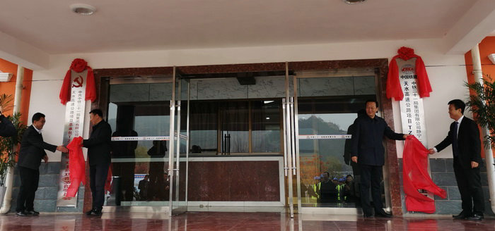 圖為各級(jí)領(lǐng)導(dǎo)為項(xiàng)目部揭牌