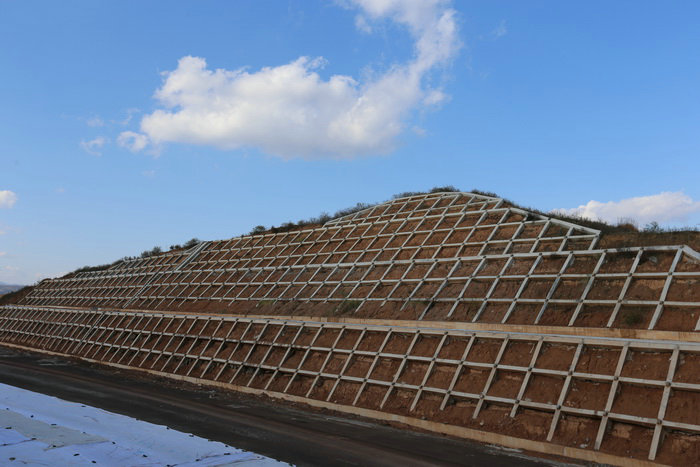 路基網(wǎng)格護(hù)坡記者在現(xiàn)場(chǎng)看到,K71+150涵洞處140米的路基正在加緊填筑,這段路基2萬(wàn)多方土方拖了三年多不能施工,剩余31塊涵洞蓋板無法吊裝,成為全線的腸梗阻。原因就是一家磚廠征地拆遷補(bǔ)償問題一直未解決,磚廠老板多次阻工,項(xiàng)目部一直向業(yè)主、地方政府反映情況,卻沒有任何效果,使施工單位深受其害,施工成本增加了幾倍。10月13日,平?jīng)鍪幸晃桓笔虚L(zhǎng)前來了解高速公路征遷方面的問題,項(xiàng)目部立即將此事反映上去。事情得到解決后,為防夜長(zhǎng)夢(mèng)多,張永連夜組織吊車進(jìn)行涵洞蓋板吊裝。每塊蓋板重達(dá)五、六噸,張永不放心一直在現(xiàn)場(chǎng)指揮,當(dāng)?shù)?1塊蓋板吊裝完時(shí),已經(jīng)是凌晨?jī)牲c(diǎn)了。第二天一早,他又生龍活虎地出現(xiàn)在施工現(xiàn)場(chǎng),指揮路基填筑施工。