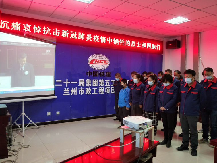 4月4日中鐵二十一局五公司蘭州市政項目部廣大職工哀悼疫情烈士和逝世同胞。