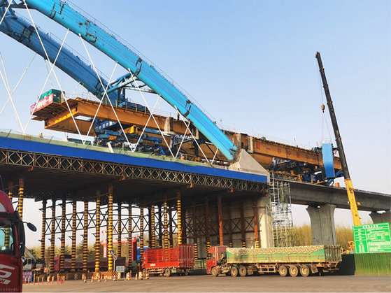 —— 魯南鋪架項目架梁一隊架橋機順利通過128米系桿拱