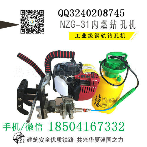 NZG-31Ⅱ型內(nèi)燃鋼軌鉆孔機(jī)適用于43㎏/m~75㎏/m各種鋼軌軌型鉆孔作業(yè)。整體結(jié)構(gòu)緊湊,是國(guó)內(nèi)質(zhì)量較輕的一款鉆孔機(jī)。夾軌裝置具有自鎖功能,定位準(zhǔn)確、鉆孔精度高。采用空心鉆頭,根據(jù)需要也可裝夾φ13.5以下麻花鉆,鉆孔時(shí)具有自動(dòng)給水功能,是工務(wù)部門(mén)維修、搶修及大修作業(yè)必備工具。