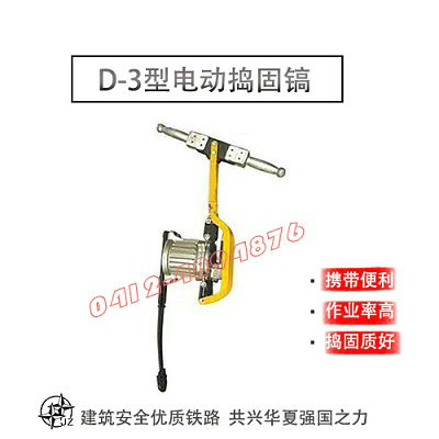 D-3型電動(dòng)搗固鎬適用于鐵路線路大修、維修作業(yè)中道床、石碴搗固。該機(jī)具有作業(yè)效率高、體積小、重量輕、操作簡單、安全可靠等特點(diǎn),能夠滿足鐵路道碴搗固作業(yè)的需要。