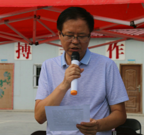 圖二、寧夏公路建設(shè)管理局副局長馬洪林致開幕詞 揭幕戰(zhàn)首先在寧夏公路建設(shè)管理局和中鐵建大橋局京藏14標(biāo)之間展開,經(jīng)過激烈角逐,最終比分定格在37:32,京藏14標(biāo)作為首屆京藏杯籃球賽冠軍以及主場作戰(zhàn)優(yōu)勢,以5分優(yōu)勢小勝取得開門紅。