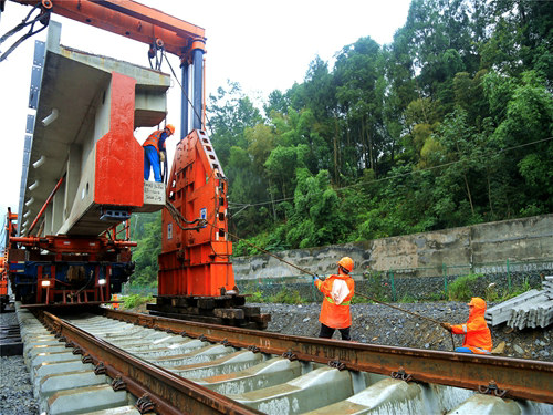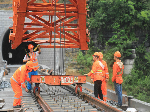 17時(shí),天氣再次轉(zhuǎn)入了惡劣狀態(tài),大雨紛飛中,一群頭戴橙色安全帽、身著防護(hù)服的工人們依舊進(jìn)行著緊張的鋪架施工作業(yè)。有的拿著鐵锨整理橋面道砟,有的手持鋼尺丈量梁縫和水平,班子成員則深入現(xiàn)場(chǎng)各個(gè)角落查找安全隱患……提起山城的雨季,工人們都笑著說,既然選擇了工程,就意味著堅(jiān)守下去,風(fēng)里來雨里去,早都習(xí)慣了。