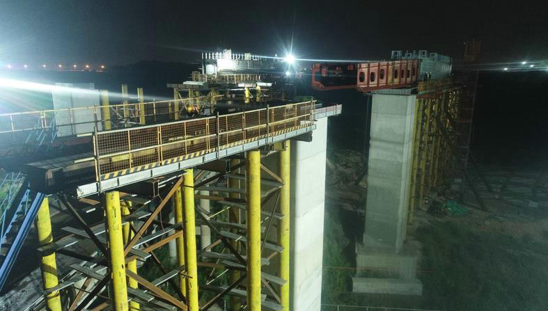 “前置鋼導(dǎo)梁和鋼蓋梁構(gòu)成一個(gè)整體,然后再采用分級拖拉滑移頂推施工,可以有效解決單跨頂推的難題,另外臨近外腹板位置設(shè)置導(dǎo)梁,可以保證傳力,確保頂推作業(yè)順利完成,對我們上部結(jié)構(gòu)的施工具有重要意義。”現(xiàn)場管理組總工母樹然表示。