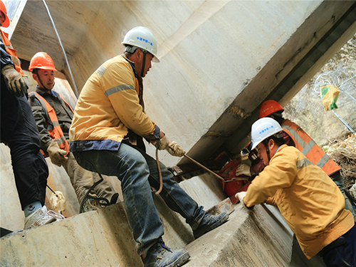 期間,為確保移梁施工安全有序進(jìn)行,項(xiàng)目部統(tǒng)籌規(guī)劃,科學(xué)部署,第一時(shí)間指派分管領(lǐng)導(dǎo)深入現(xiàn)場(chǎng)開(kāi)展調(diào)查,隨后根據(jù)調(diào)查結(jié)果研究制定移梁作業(yè)方案。移梁過(guò)程中,工人們嚴(yán)格按照前期技術(shù)交底及安全規(guī)定,尋尋有序地開(kāi)展線(xiàn)路拆除,蓋板支座切割,滑道安放及移梁線(xiàn)路恢復(fù)等作業(yè)環(huán)節(jié)。并且在搶抓施工進(jìn)度的同時(shí),緊抓安全質(zhì)量不放松,嚴(yán)格落實(shí)施工有方案,技術(shù)有交底,工序有檢查,安全有卡控的工作方針,最終在20余名人員7天的不懈努力下,全線(xiàn)移梁施工完美告捷,為該條鐵路石子壩至中嘴段的按期開(kāi)通運(yùn)營(yíng)提供了堅(jiān)實(shí)保障。
